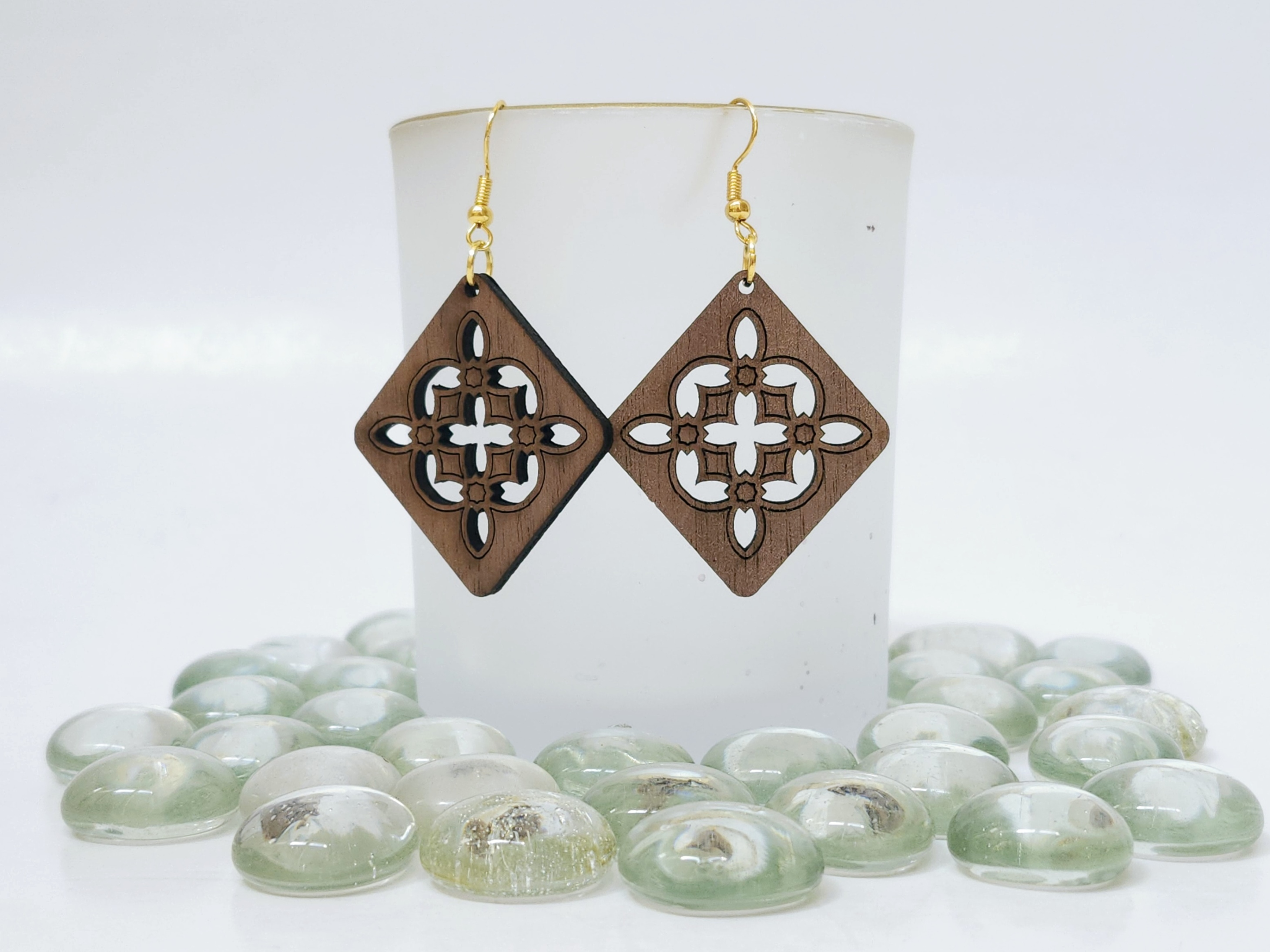- Think hexagons, mandalas, and overlapping circles for geometric laser cut earrings.