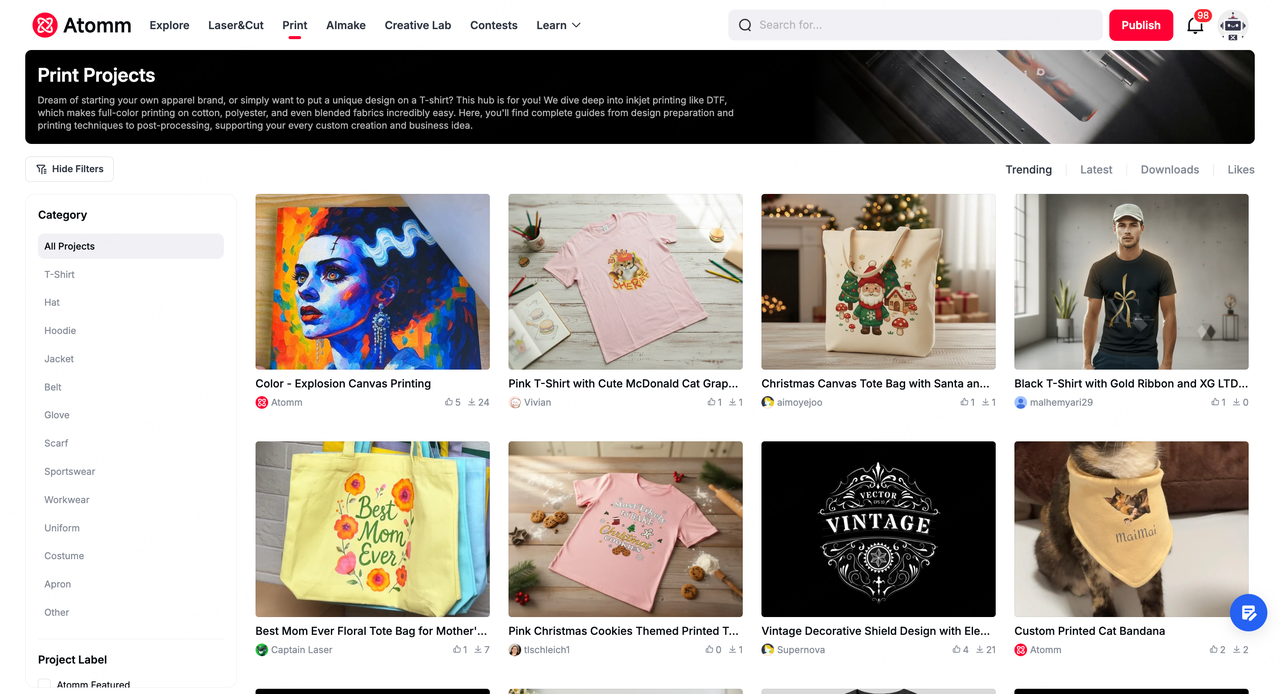 - Deep Categorization by Craft: Project page is now split into major craft categories: Laser & Cut and Print. Both the Search Results page and the Global Filter now feature Craft Filter functionality, allowing you to quickly locate content based on your production needs.