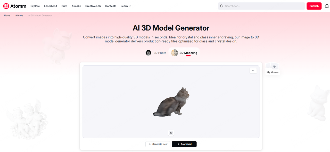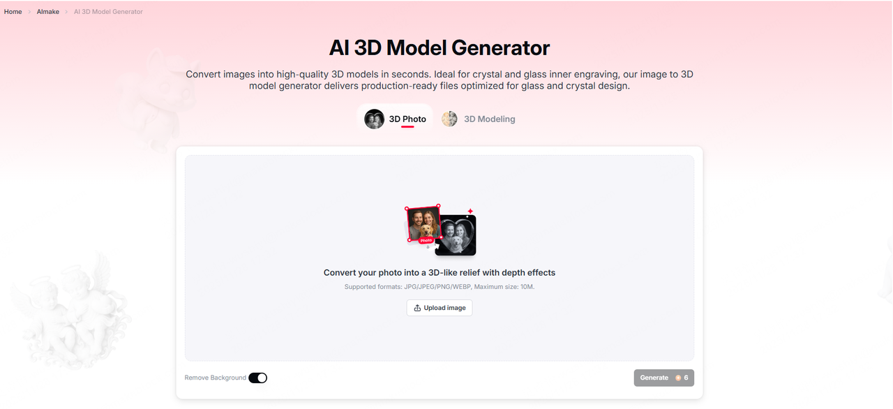 - Modes: It offers two generation modes: 3D photo and 3D model.
