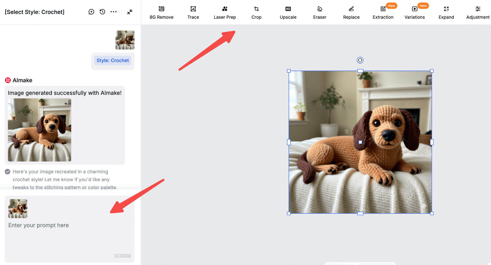 Your generated crochetstyle images can be printed directly onto everyday items, from Tshirts, hoodies, and canvas tote bags to decorative patches that mimic sewn icons like hearts or stars. You can even turn a customer’s pet photo into a lasting “forever” crochet portrait on canvas, offering a stylish, hypoallergenic gift. Explore more ways to showcase your designs in our Print Projects collection, where you’ll find inspiration for apparel, accessories, and custom keepsakes.