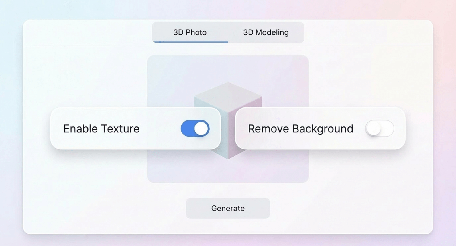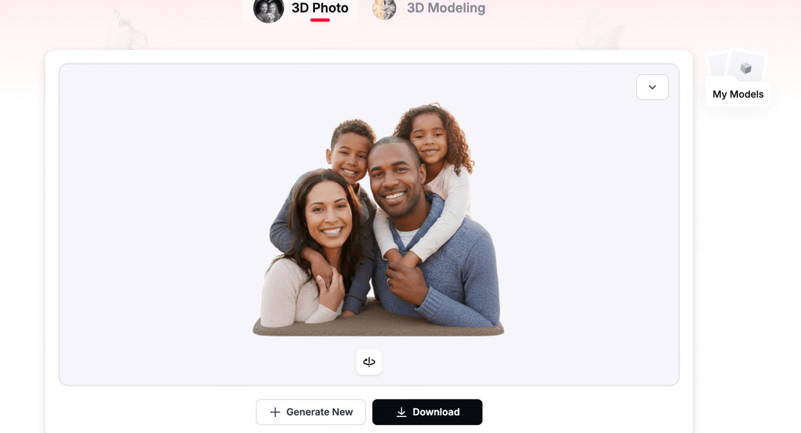 Next, select the processing mode to turn your image into a 3D model. Use 3D Photo for portraits to preserve facial accuracy. For objects, choose 3D Modeling, which lets you select an AI 3D model from image engine ranging from fast generation to high-fidelity modes for exceptional realism.