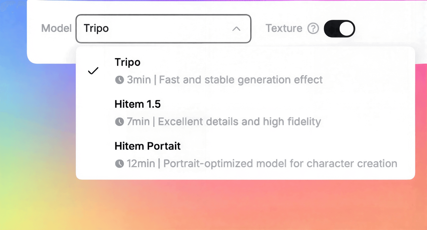 Hitem is a precision-focused AI model built to produce 3D models with outstanding detail and photorealism, particularly excelling in portrait and character reconstruction. Through capturing accurate facial geometry, structural contours, and surface textures, Hitem guarantees faithful reproduction of every characteristic, delivering a natural, true-to-life representation.
