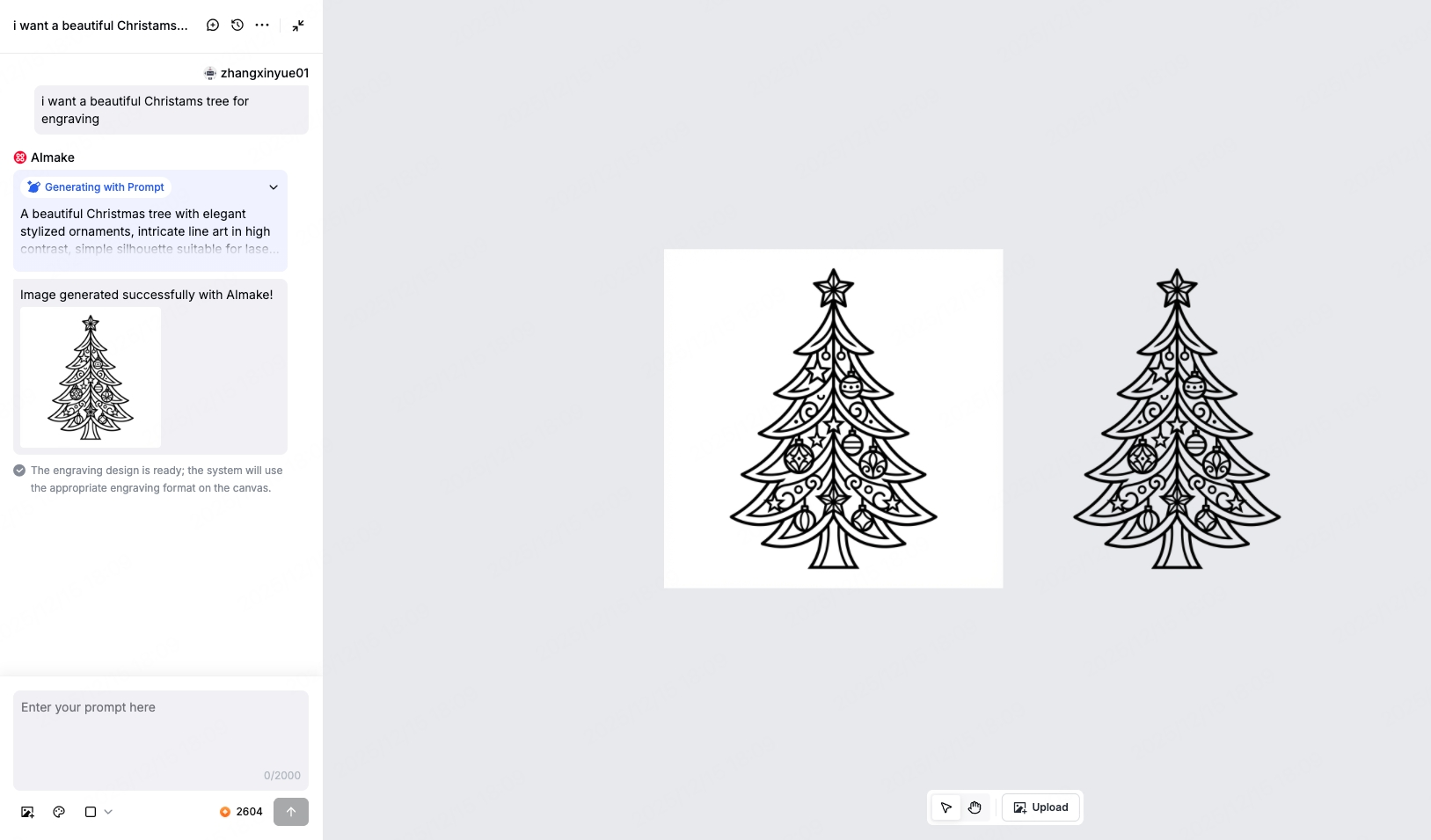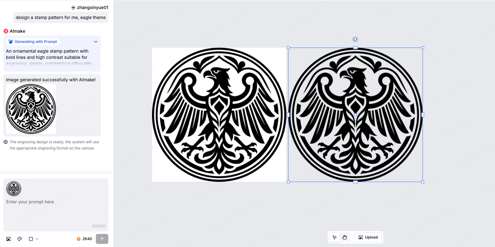 For engraving tasks, AImake understands the nature of your content and automatically generates images best suited for engraving, including transparent line art, black-and-white fills, or grayscale images.