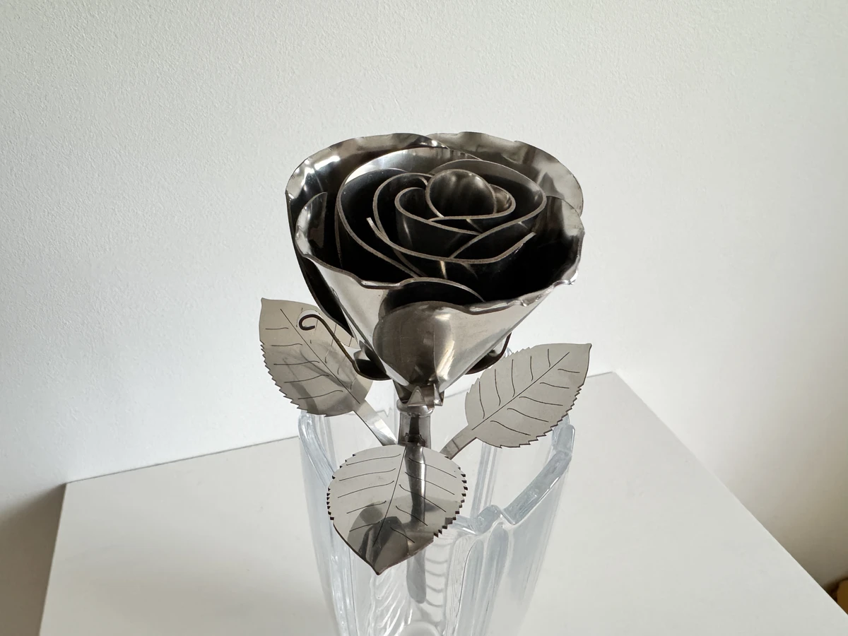 Capture the beauty of nature that never fades with this Handcrafted Metal Rose laser cutting. It features intricate, lifelike petals and detailed leaves, making it a stunning piece of metal art. This everlasting flower is a perfect romantic gesture for Valentine’s Day or a traditional Iron Anniversary gift (6th year). Unlike fresh flowers, this durable metal sculpture lasts over time, symbolizing enduring love. Whether you display it in a vase or as a standalone centerpiece, this rose adds elegance and craftsmanship to any home decor.