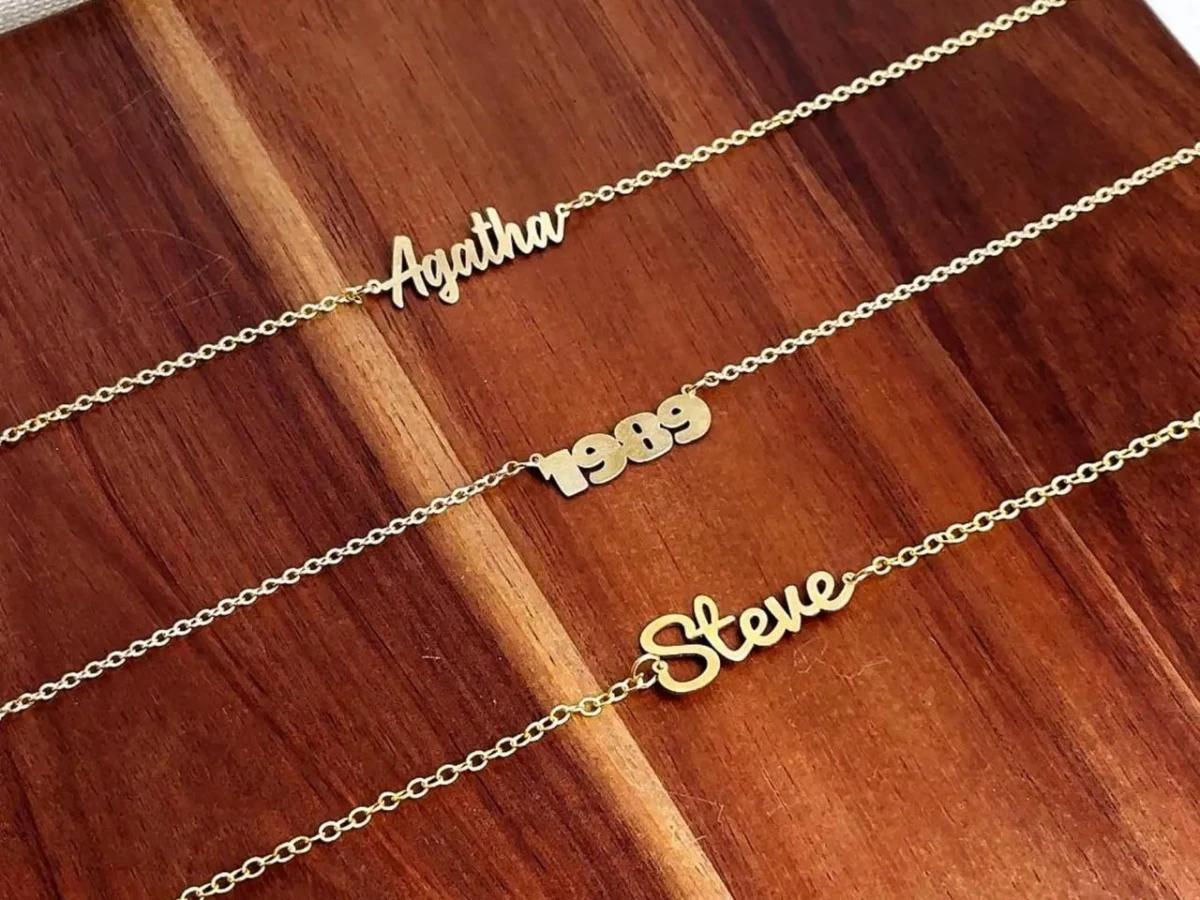 Wear your identity proudly with this custom Metal Name Necklace laser cutting. Precision-cut with laser technology, this piece of personalized jewelry provides a sleek, modern look that goes well with any style. Available in finishes like polished stainless steel, gold tone, or silver, it makes a thoughtful gift for birthdays, bridesmaids, or special occasions. The sturdy metal ensures the script remains crisp and unbending, while the fine detailing highlights the elegance of the chosen typography. Elevate your accessory game with a custom nameplate necklace that is uniquely yours.