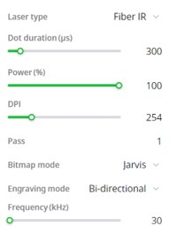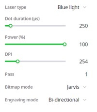 The settings I use are for the xTool F1 Ultra which has a 20W fiber laser and a 20W diode laser.