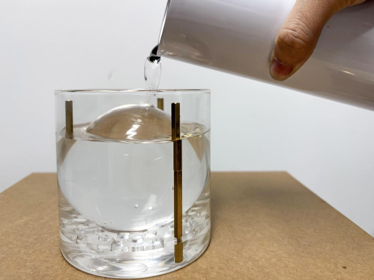 Pour the inner engraving oil slowly to prevent foaming. It is sufficient that the inner engraving oil completely submerges the crystal ball (a horizontal water surface needs to be formed). Then measure the height of the liquid surface with a ruler.