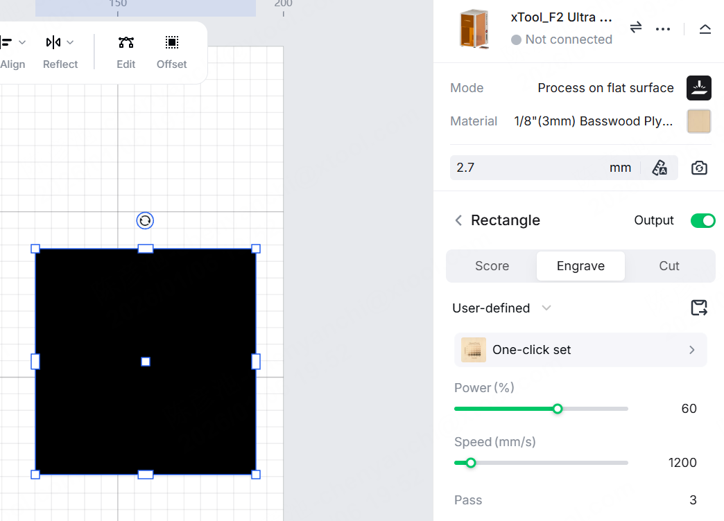 👉 Power: 60 👉 Speed: 1200 👉 Passes: 3