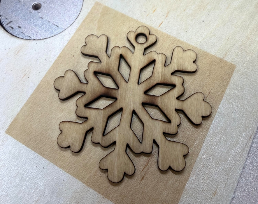 I also cut a snowflake using only the F2 Ultra UV directly, and the results were incredibly clean. The cutting surface showed the natural wood texture without any burn marks, and the efficiency was much higher compared to any other method. I absolutely love how F2 Ultra UV handles wood!