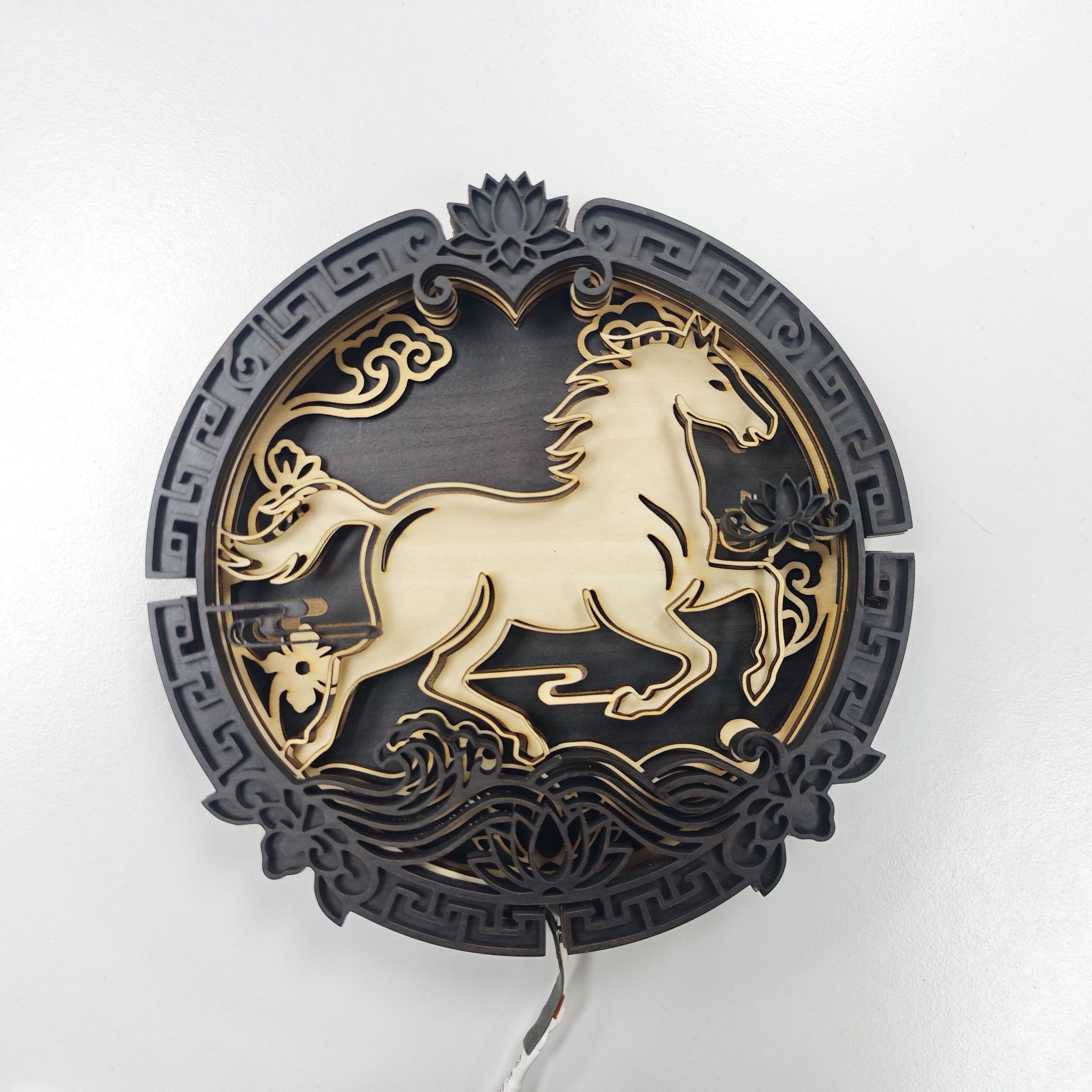 "The design draws inspiration from traditional Chinese auspicious clouds (祥云) combined with the Year of the Horse, symbolizing good fortune and well-being for the new year. It can be realized as a small lamp or a tabletop art installation."