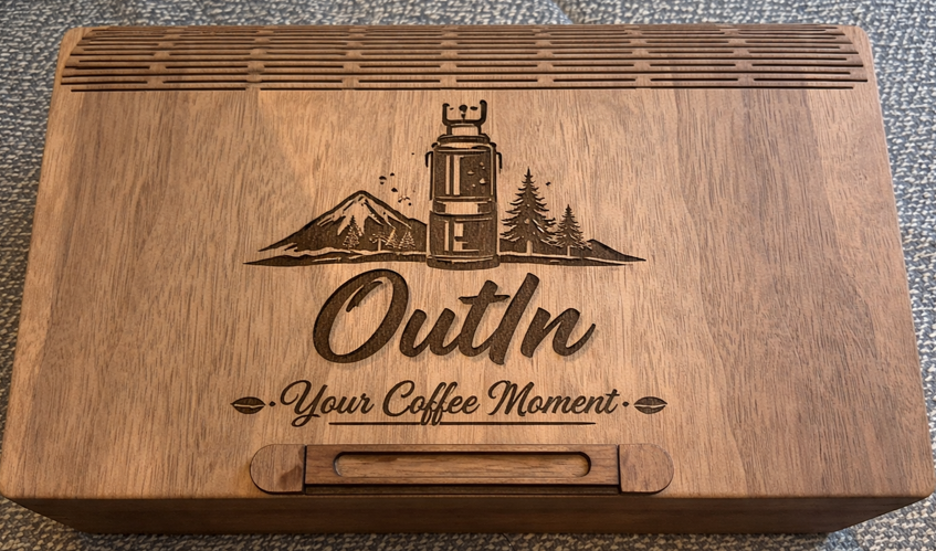 OutIn - Enjoy your Coffee Moment Wood Box - with OutIn Nano Foam Inlay.