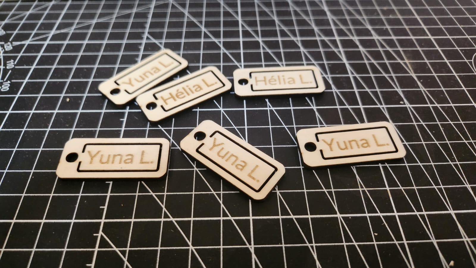 #backtoschool 🇫🇷 Description Planche d’étiquettes en contreplaqué de peuplier 3 mm pour marquer cartables, trousses, gourdes, vestes ou casiers d’école. Chaque étiquette comprend un trou pour anneau, un cadre intérieur gravé et un prénom gravé avec prise en charge des accents/majuscule. Légères, solides et lisibles, elles se montent en quelques secondes sur un zip ou un porte-clé. Livrable en feuille multi-pièces (mise en page au choix) pour une production rapide à la rentrée. Usage recommandé Cartable, trousse, sac de sport, porte-clé, casier, lunch box, clés du vestiaire. 🇬🇧 Product Sheet — School Name Tag Sheet Title School Name Tag Sheet — 3 mm wooden labels, personalized, laser-cut Description A sheet of 3 mm poplar plywood name tags to label backpacks, pencil cases, lunch boxes, lockers and more. Each tag features a left-side hole for a ring, an engraved inner border, and a personalized name (accents and punctuation supported). Lightweight, sturdy and easy to read, they attach in seconds to a zipper or key ring. Delivered as a multi-piece sheet layout for fast back-to-school production. Recommended uses Backpack, pencil case, sports bag, key ring, locker, lunch box.