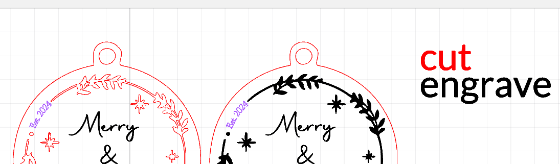 What to cut and what to engrave is made clear with the colors. One design can both be cut or engraved