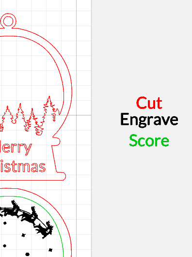What to cut and what to engrave is made clear with colors. The ornament is made in 2 pieces. If it comes out of the laser, just glue it on each other